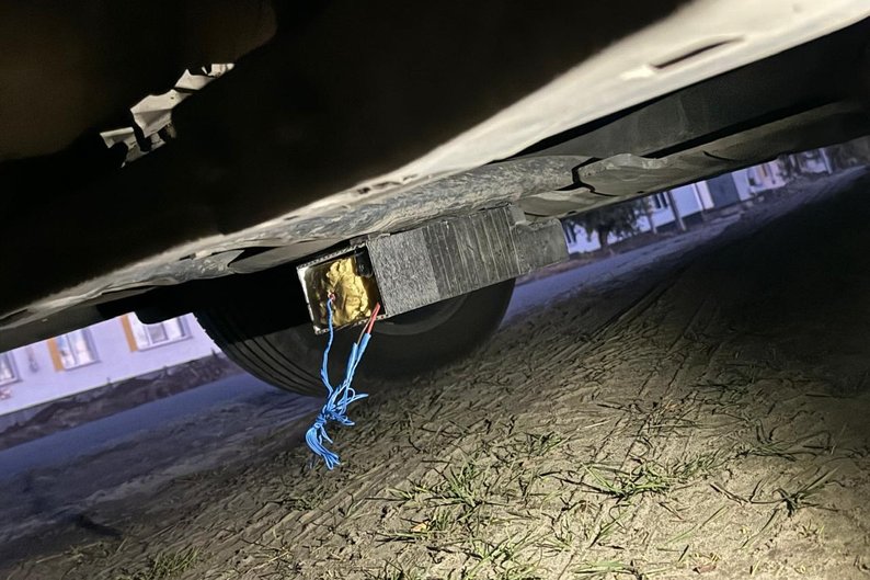 Був під моторним відсіком, заряд стояв під водієм, саме під днищем, прикріплений до кузовної рами транспортного засобу.