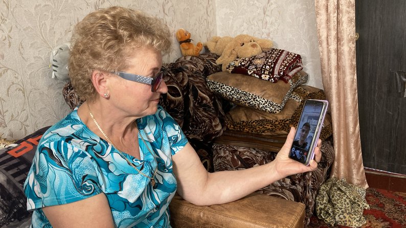 Валентина Козир говорить зі своїм старшим онуком. Суспільне Харків/Лариса Говина
