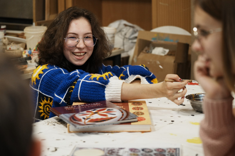 18-річна Валерія Черепанова проводить майстер-клас з писанкарства у Харкові, 1 квітня 2026 року. Суспільне Харків/Вікторія Якименко