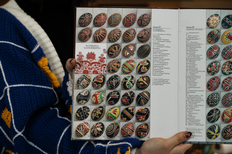 "Писанки Харківщини, наприклад, мають лише декілька дубових або квіткових листочків. Це здебільшого рослинний орнамент. Вважається, що де дуб — це чоловічий початок, тобто дерево, яке має могутність, це як побажання на довголіття. А писанка з пояском дарується також прадідам і дідам на побажання довголіття, гарне господарство. Зелений колір — це побажання на здоров’я. Приблизно, що й синій колір. Жовтий — це колір чистоти", — каже Валерія.