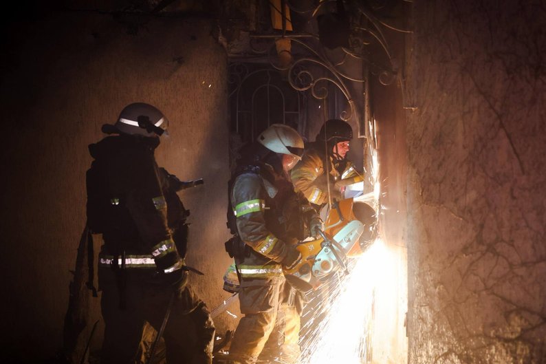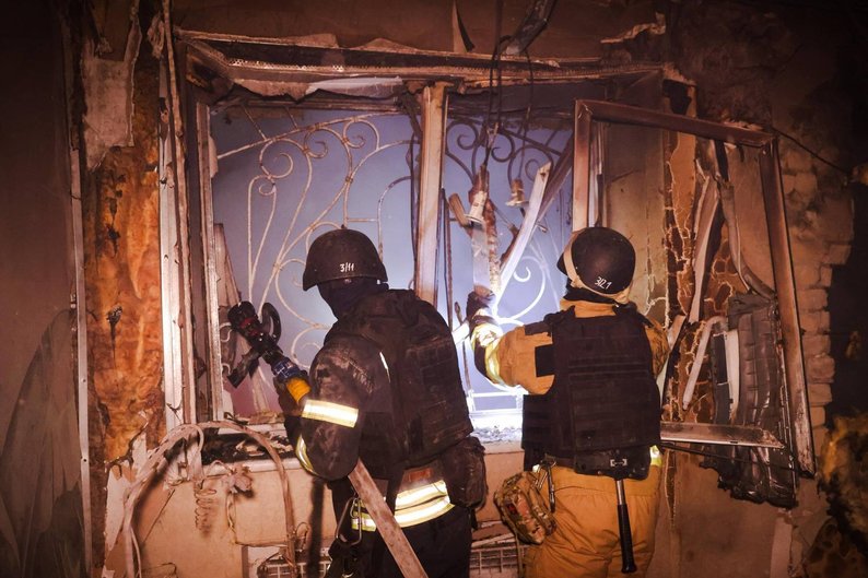 Рятувальники в пошкодженому ударом “Шахеда” будинку в Холодногірському районі, Харків, 18 січня 2026 року. ДСНС Харківщини