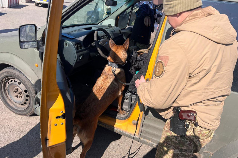"В ході перевірки старшим кінологом кінологічної групи разом зі службовим собакою Аморек в багажному відділенні автівки було виявлено 30 кілограмів тротилу та 800 набоїв калібру 14,5мм", — цитують у пресслужбі начальника кінологічної служби 5-ї Слобожанської бригади "Скіф" НГУ Сергія Рідкокашу.