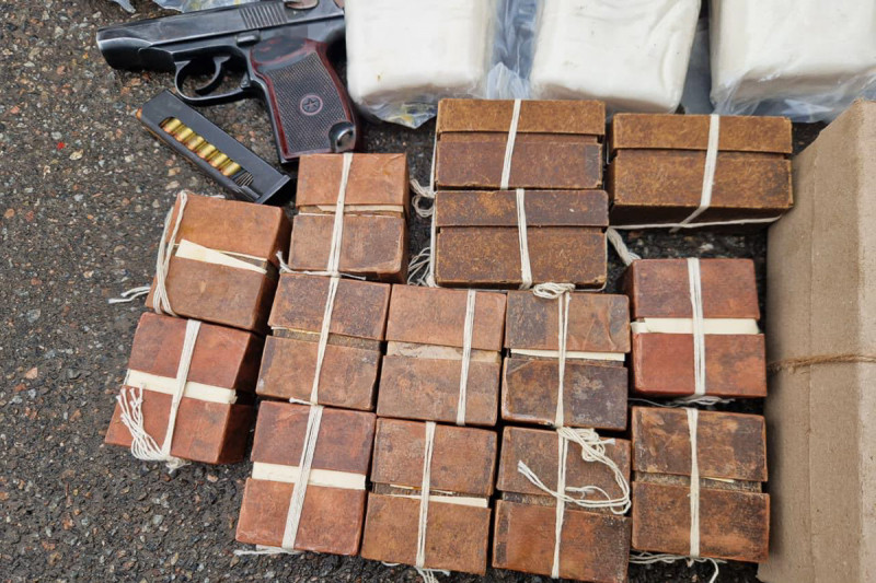 Вилучений пістолет та заборонені речовини. 5 Слобожанська бригада “Скіф” НГУ/Facebook