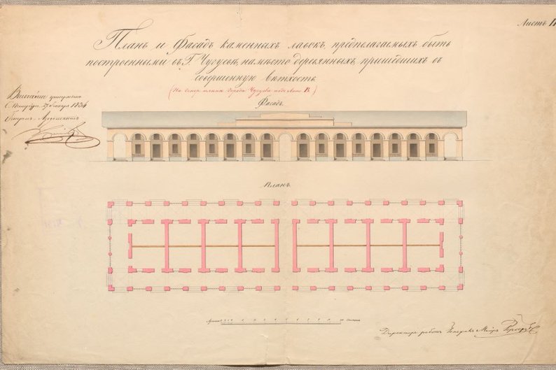 Копія зображення з проєкту, за яким будувалися Торгові ряди у Чугуєві. Зображення надала директорка музею Іллі Ріпина Світлана Бучаста