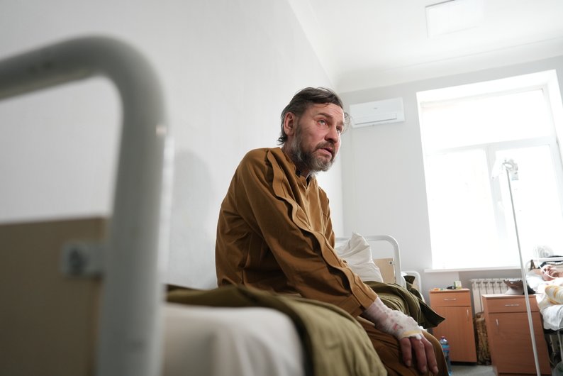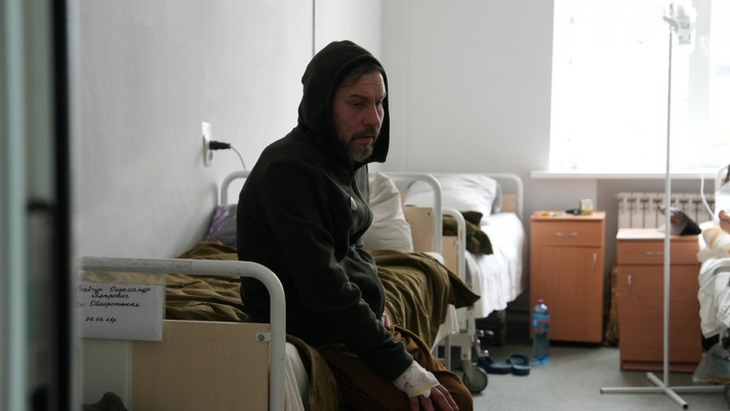 Військовий з позивним “Везунчик” у шпиталі після 8 місяців на позиції у Вовчанську, березень 2026 року. Суспільне Харків/Олександр Манченко