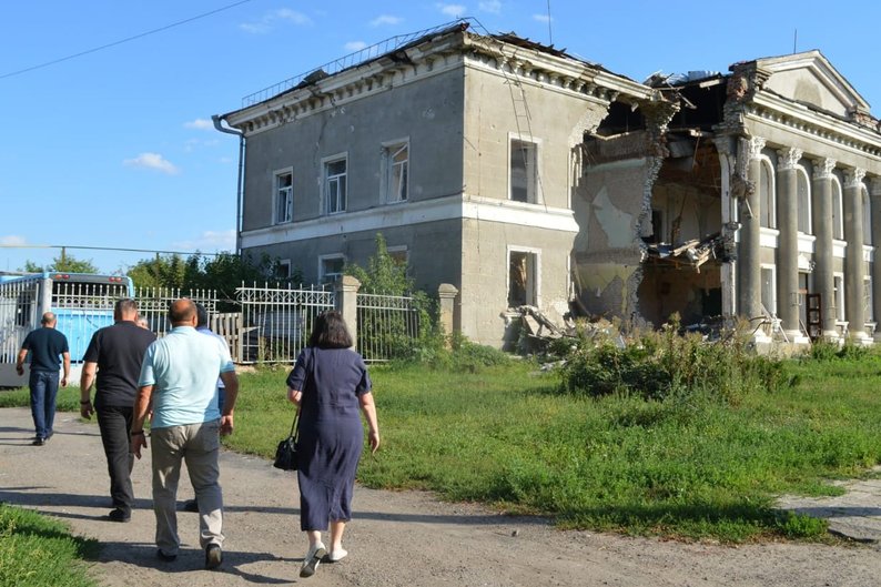 Пошкоджене російським влучанням приміщення колишньої адміністрації, Золочів, Харківська область. Пресслужба Золочівської селищної ради