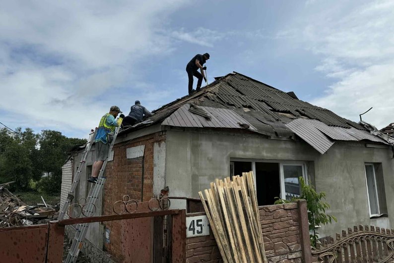 Консервація приватного будинку, пошкодженого російським ударом, Золочівська громада, Харківська область. Пресслужба Золочівської селищної ради