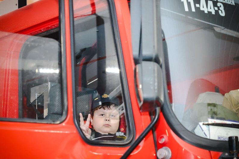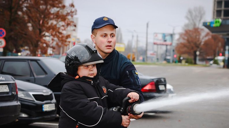 "Артем побачив техніку й оснащення вогнеборців, відвідав службові приміщення, а головне — зміг відчути себе частиною команди, власноруч подавши воду з пожежного ствола", — йдеться в повідомленні.