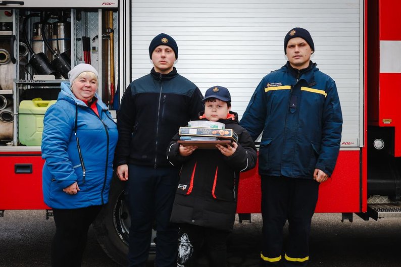 Артем із бабусею та рятувальниками. ДСНС Харківщини