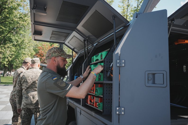 "Ми використовували його для обварювання машин. З решіток робляться каркаси, які захищають броньовані машини від дронів. Є різні набори інструментів для ремонту в полі. Ми можемо бути мультизадачними з виконання якихось робіт, ремонтів як на імпортній техніці, так і на нашій", — розповів військовий.