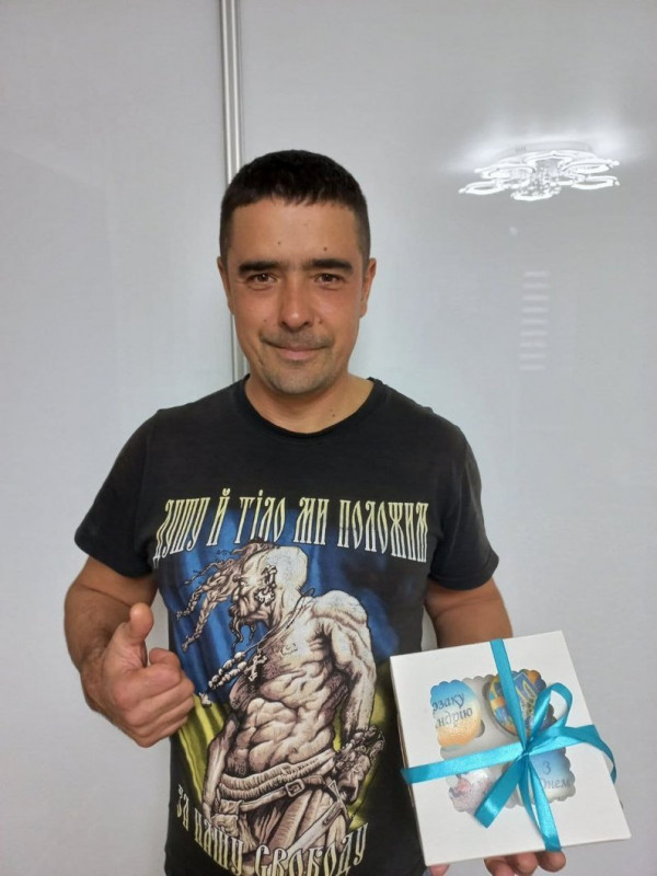 Андрій Іванов з подарунком. Фото надала дружина Ірина Іванова