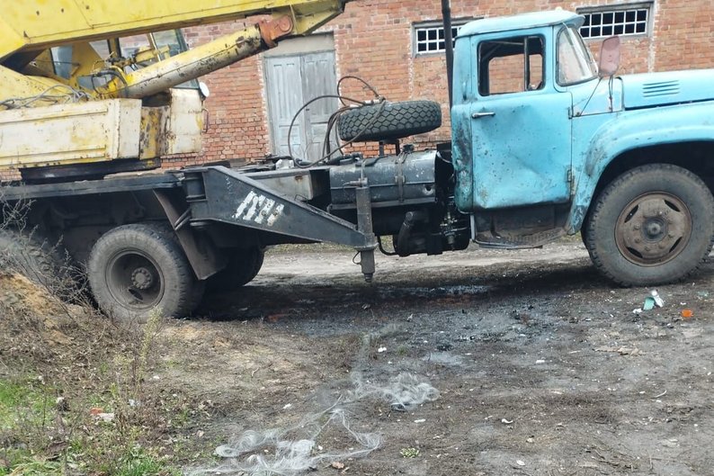 Автокран, який зазнав пошкоджень через атаку дрона у Золочеві, 30 листопада 2025 року. Віктор Коваленко