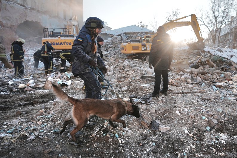 До робіт з пошуку тіл загиблих у Харкові під час вибухів 2 січня 2026 року долучили кінологів. Зокрема на місці працюють бельгійська вівчарка Мрія з кінологинею Альоною Сіленко.
