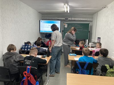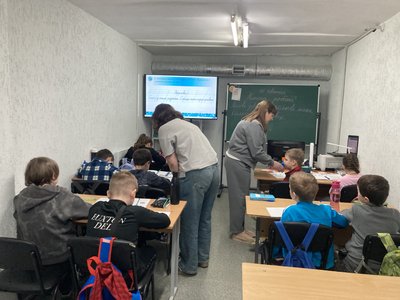 "Тут у нас декілька локацій, де навчаються діти з різних класів. І при цьому у нас діти навчаються по різних днях, різні класи. Тому що всі ж не вміщаємося, у нас всього п'ять кабінетів. Це діти, які живуть у Харкові, і яких батьки погодилися возити сюди. Ну і старші, які самі їздять", — розповідає директорка.