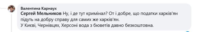 Харків’яни в соцмережах активно обговорюють нововведення. Одні радіють можливості безкоштовно мати питну воду, інші посміюються над аж занадто відвертим самовихвалянням міської влади.