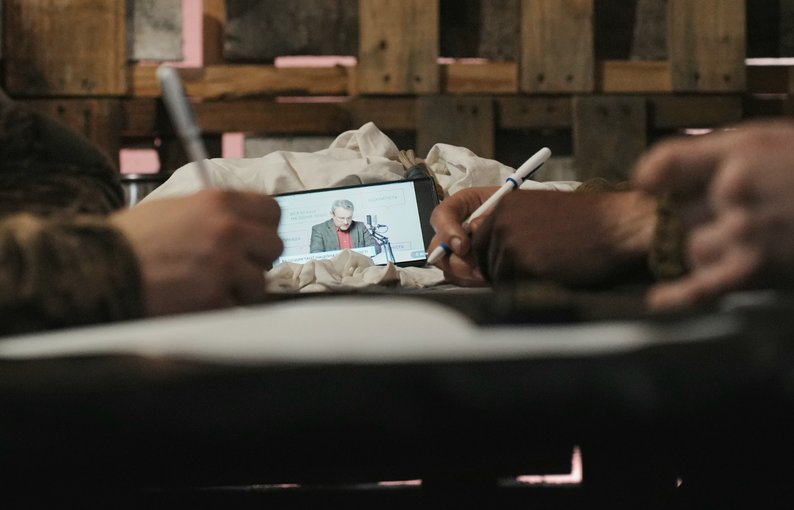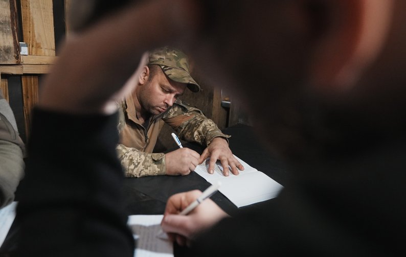 Бійці “Хартії” пишуть диктант на позиціях, 27 жовтня 2025 року. Суспільне Харків/Вікторія Якименко