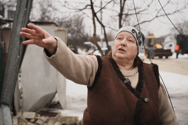 Ніна Алмакаєва, власниця зруйнованого, внаслідок влучання РФ, будинку у Салтівському районі Харкова. Суспільне Харків/Вікторія Якименко