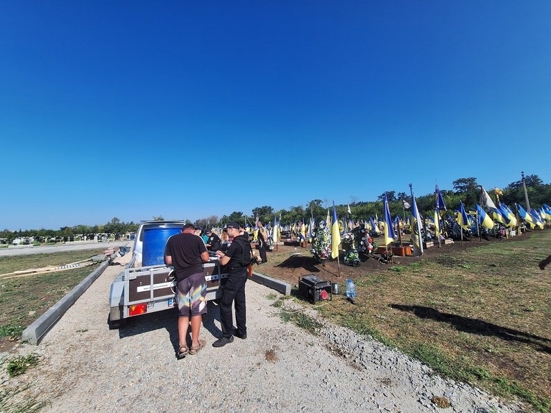 Вчора (15 серпня, — ред.) приїхав наш підрядник з міста Коростишева, й вони почали роботи. Почали заливати один пам'ятник, основу під пам'ятник, й почали другий сьогодні робити. Приїхав представник міської ради, викликав поліцію. Нашого підрядника, який працював до цього на кладовищі, забрали. Сказали, що будуть відкривати кримінальне провадження, що ми порушили якісь закони й так далі. Хоча, за законом, ми нічого не порушили — ми просто хочемо поставити те, що хотіли ми й наші рідні при житті.