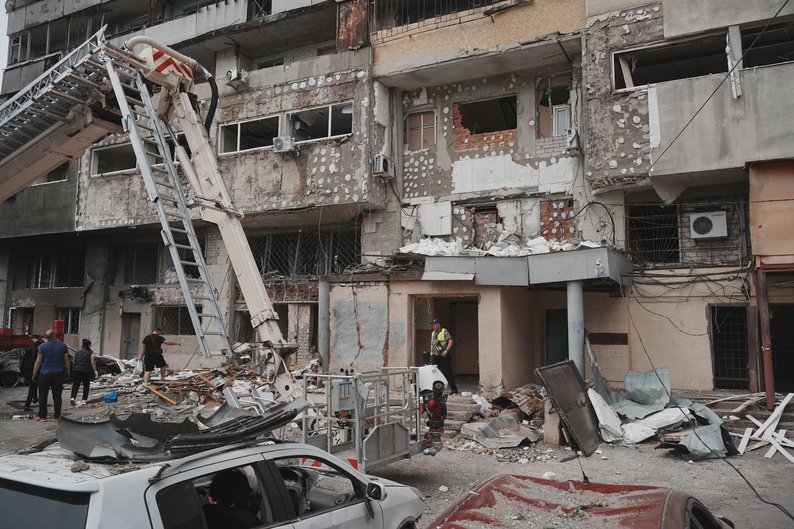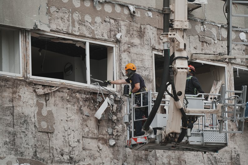 Рятувальники проводять демонтаж будівельних конструкцій після влучання поблизу 24-поверхівки на Салтівці у Харкові, 12 червня 2025 року. Суспільне Харків/Вікторія Якименко