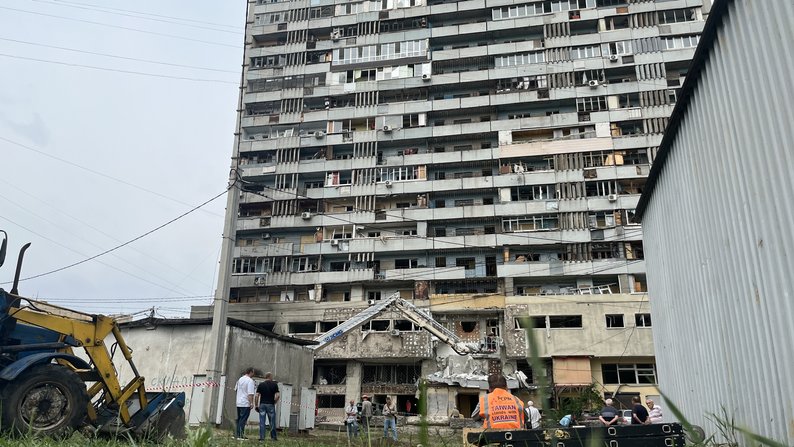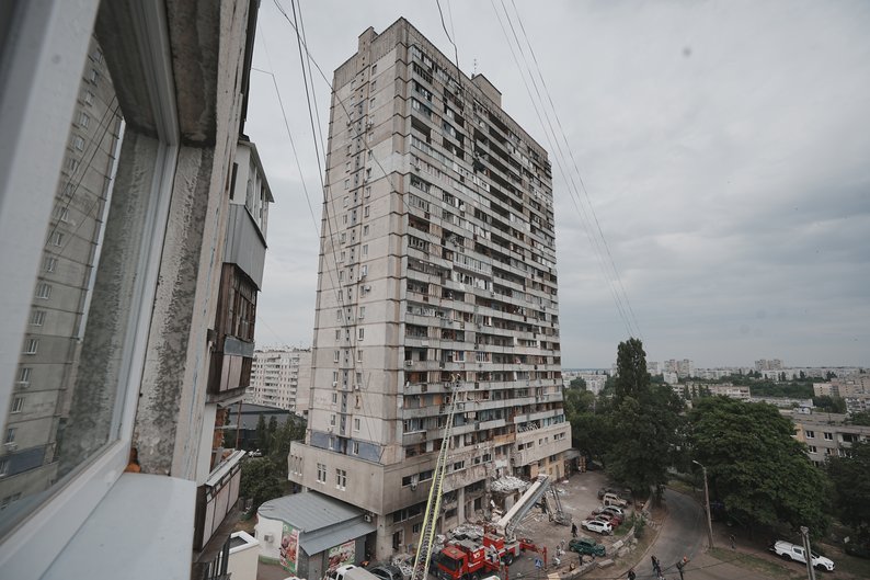 Наслідки удару дроном поблизу першої житлової висотки у Харкові, 12 червня 2025 року. Суспільне Харків/Вікторія Якименко