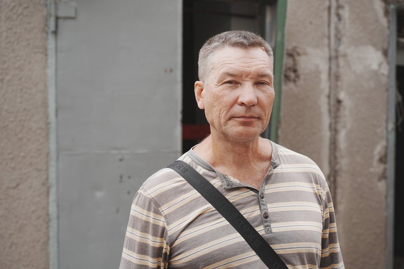 Сергій Красноярузський внаслідок атаки РФ зазнав поранень рук, а його дружина — спини. Після удару, каже Сергій, подружжя впало через вибухову хвилю.