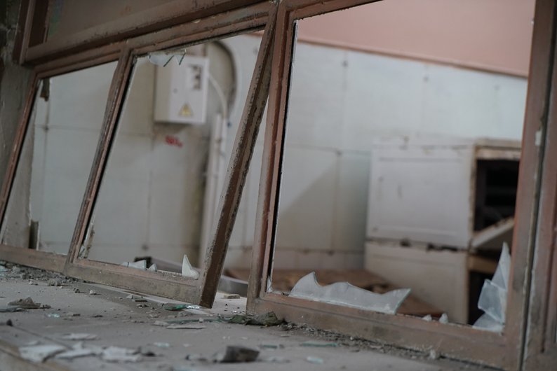 Вибиті вікна в ліцеї в Ізюмі після нічної атаки російських безпілотників, 29 жовтня 2025 року. Суспільне Харків/Валерія ЄмецьЛюди вже тут взялися до роботи з відновлення, з прибирання території. Ми написали листи до громадських організацій з проханням надати нам допомогу у відновленні, щоб вікна позакривати. Ми маємо намір продовжувати навчальний процес.