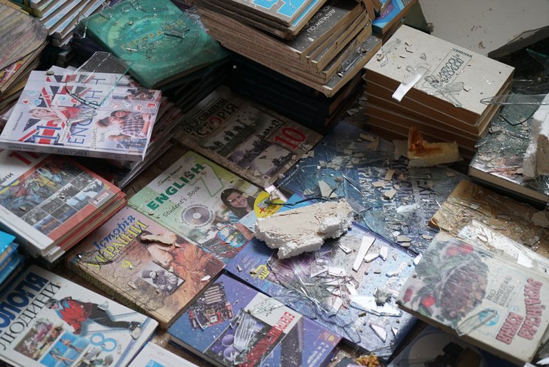 "З нього залишилося шість тисяч примірників: навчальна література, художня література, технічне. Відновлювати будемо, будемо намагатися підручники до ладу приводити, працювати з учнями. Ми вже це один раз проходили, і на відновлення бібліотеки було дуже багато покладено зусиль. І здавалося, що ось-ось вже доробили й можемо працювати. І все знову з нуля починаємо відновлювати", — розповіла Якимова.
