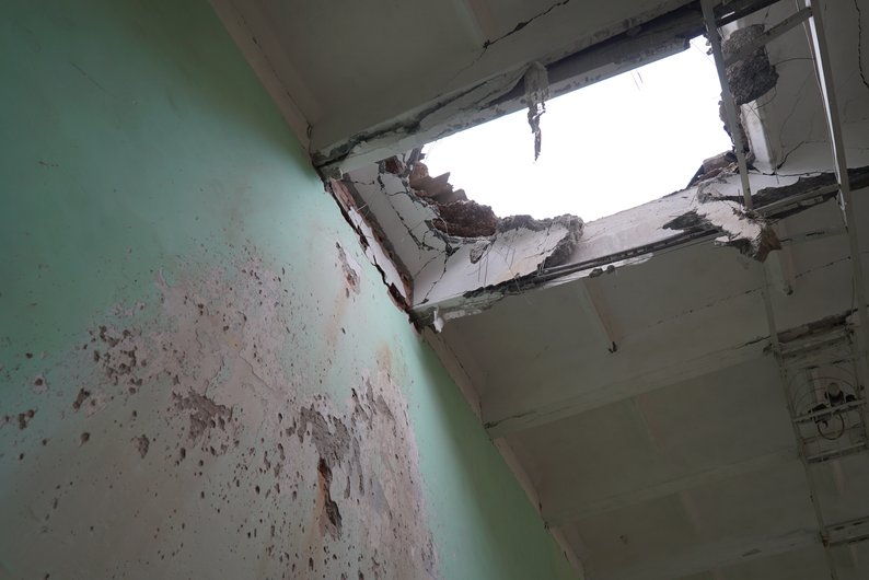 "Там пошкоджена була споруда торговельно-розважального закладу, зруйнована, можна сказати. Там також було бізнес-приміщення, діюче, також пошкоджена лінія в банківській установі, і поряд були будинки, які були аварійні, там ще додалося пошкоджень, але вони нині нежитлові, тому що потребують капітального ремонту", — розказав Гоман.