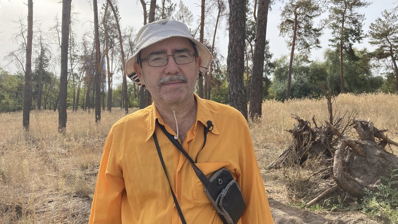 Біолог Юрій Бенгус у Журавлівському лісі у Харкові, вересень 2024 року. Суспільне Харків/Лариса Говина