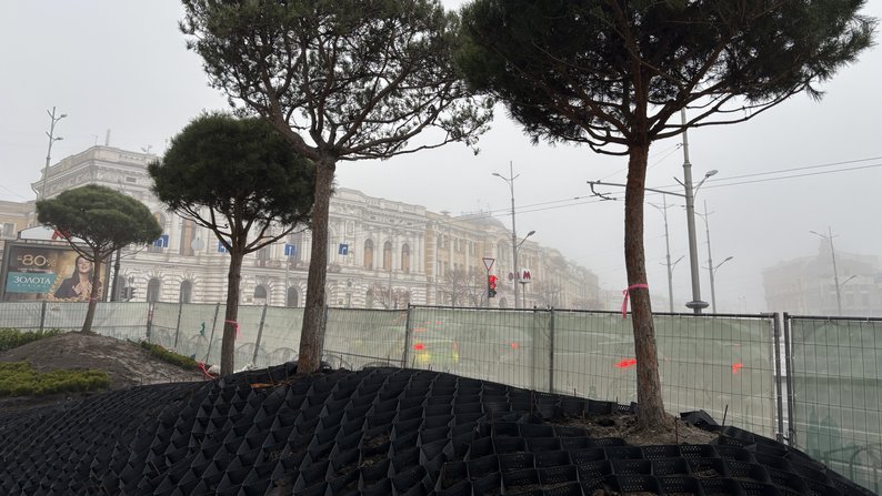 Сосни, які висадили у зеленій зоні біля “Градусника” у Харкові, 27 листопада 2025 року. Суспільне Харків/Давид НадворнийТут є ще кілька цікавих моментів. Оскільки це дерева стрижені, то виникає питання, що з ними робити далі. Технологія вирощування їх, задумана тими, хто їх стриг, вимагає регулярної стрижки на майбутнє. І в цьому випадку дерева будуть зберігати форму. Якщо їх не стригти регулярно в майбутньому, я не впевнений, які вони будуть на вигляд і наскільки це буде доцільно та цікаво.