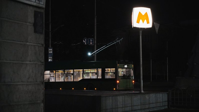 Тролейбус на площі Конституції у Харкові під час відключення світла, 27 січня 2026 року. Суспільне Харків/Вікторія Якименко