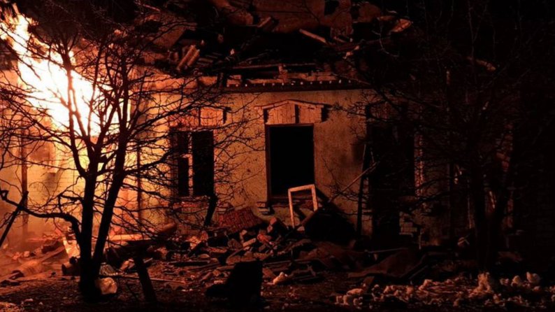 Пожежа після влучання російського дрона у селі Новопокровці, 10 січня 2026 року. Харківська обласна прокуратура
