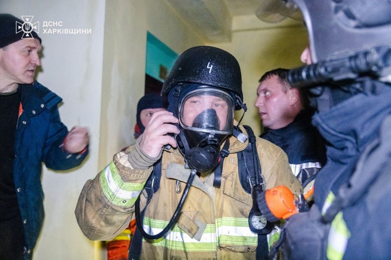 Рятувальник в апараті захисту органів дихання, Харків, 19 листопада 2025 року. ДСНС Харківщини
