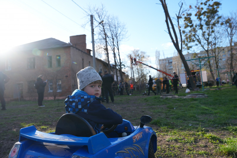 Дитина на місці влучання у Шевченківському районі Харкова, 5 квітня 2026 року. Суспільне Харків/Олександр Манченко