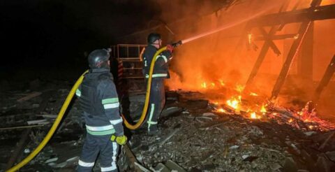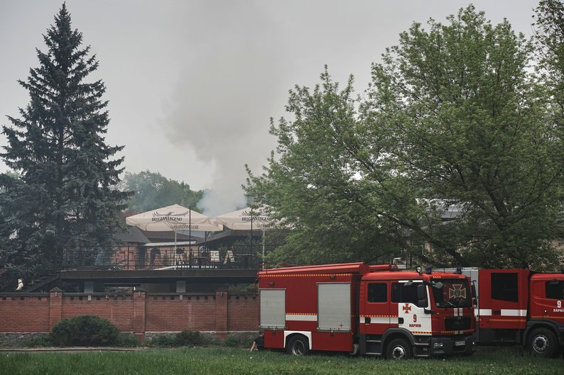 За його словами, одне з влучань було по території концертної зали. Пожежі на 08:30 локалізували.