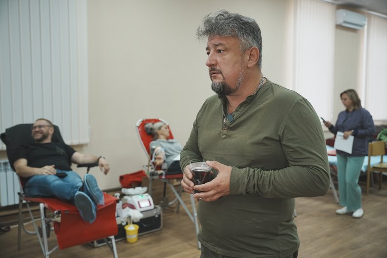 "Всі пацієнти, які надходять в стані середньої важкості, всі заходять до нас, оперуються. І майже у кожного першого є проблема з постгеморагічною анемією: вони заходять в шоку, вони втрачають кров, і ми у дуже великих обсягах ллємо і кров, і кровозамінники. Крім того, є таке, коли розпочинаються важливі й загрозливі геморагічні шоки, у нас є така практика, що у нас особовий склад чітко знає свою групу крові, і безпосередньо так звану «теплу кров» ми теж ллємо прямо в операційній", — пояснює начальник центру.