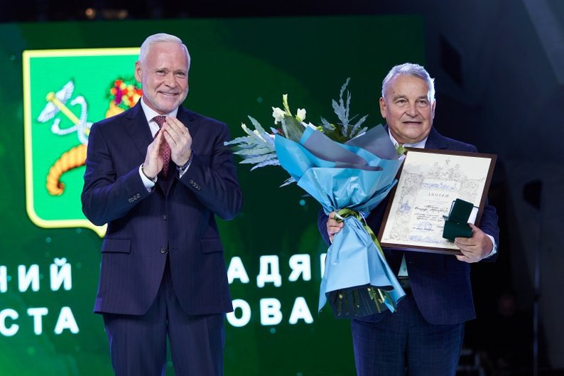 Олександр Гряник та міський голова Харкова Ігор Терехов під час вручення відзнаки “Почесний громадянин міста”, 23 серпня 2025 року. Харківська міська радаЯ дякую долі за те, що я належу до цього Великого народу, до цієї дивовижної країни й до цього рідного, теплого, світлого, й дійсно, незламного міста нашого.