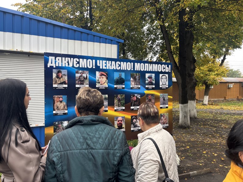 "Пішов захищати нас всіх. Зник безвісти. Шукаємо, чекаємо. Через сім днів рік. 17 жовтня минулого року. Я його дуже сильно чекаю. Всіх хлопців ми дуже сильно чекаємо. Молодці, що такий стенд зробили. Нехай бачать героїв наших" — говорить Тетяна Бровко.