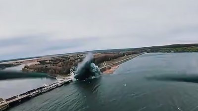 Момент влучання авіабомби РФ по дамбі у Печенігах, 14 квітня 2026 року. 16 армійський корпус
