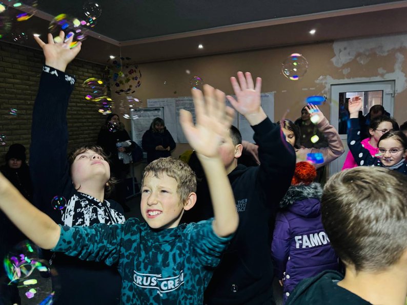 Свято для дітей із Вовчанська в Харкові, січень 2025. Олені Святого Миколая/Facebook/So VaЦе група переселенців зі сходу, у яких є хаби в Тернопільській і Львівській області. Ми хочемо, щоб у них відбулося свято і збираємо подарунки для цих дітей, але ми туди не поїдемо, а хочемо провести тренінг з волонтерами місцевими, щоб вони самі мали можливість зробити гарне свято для своїх дітей. Треба їм закупити трохи обладнання і так далі — це треба гроші, але гроші це трохи простіше, ніж команда. Ми сподіваємося, що спільнота, тих, хто підтримує нас багато років, і без кого ми не могли б нічого взагалі зробити, підтримає нас і цього разу, і в нас будуть гроші на те, щоби наші тренери змогли приїхати, зібрати команду місцевих волонтерів і провести з ними тренінги, навчити їх проводити свята, щоби ми купили їм обладнання.