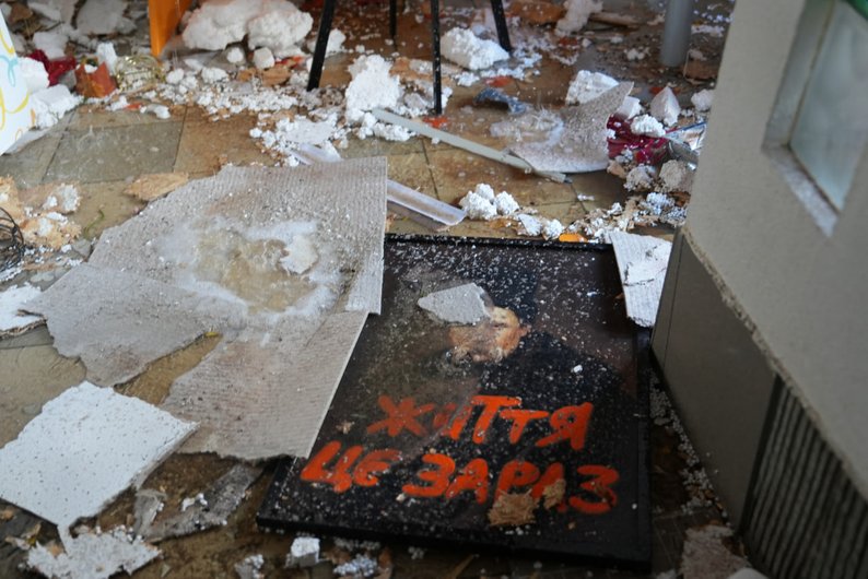 "Перекриття вціліло, тому що це стара будівля. Тут перекриття міцні й вони укріплені були раніше до нас, тому що в нас там колони є", — каже Юлія.