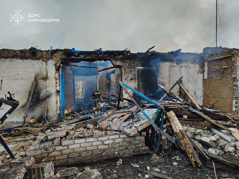 Зруйнований внаслідок російської атаки БпЛА приватний будинок у Червоному Близнюківської громади, 16 грудня 2025 року. ДСНС Харківщини