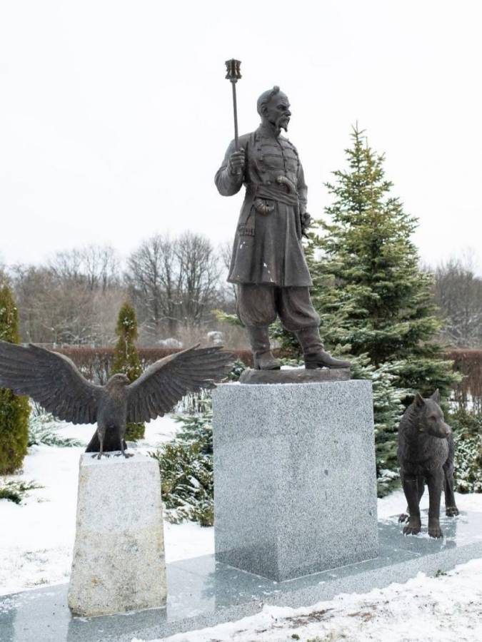 “Був 2022 рік, тоді безкоштовно щось робили для музеїв, і ми вирішили щось зліпити. Цей Сірко — не полковник, а ще козак, бродяга. Гіпсова модель була готова з 2023 року. Поруч зображені вовк і сокіл — ті тварини, на яких, за легендами, міг перетворюватися Іван Сірко”, — розказав KharkovNEWS.info Олександр Рідний.