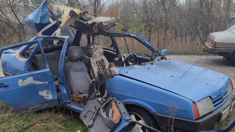 Наслідки атаки дрона на авто у Підлимані, 2 листопада 2025 року. Борівська селищна рада