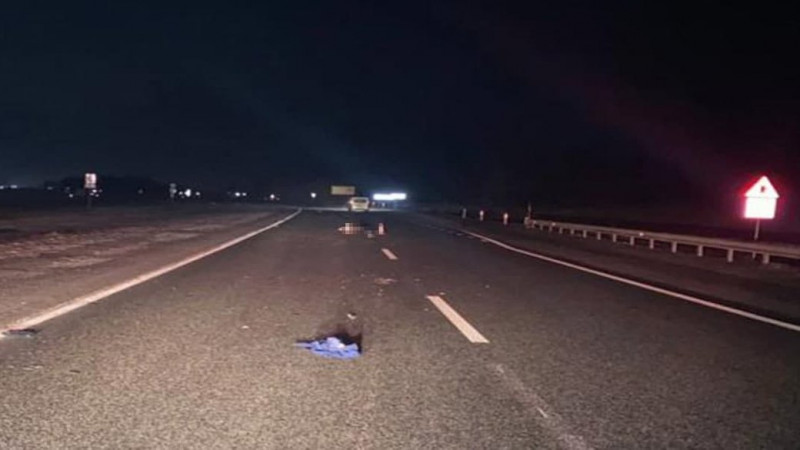 На проїжджій частині на ділянці траси 534 км + 200 м у близькому до вертикального стану напівсидячому положенні в темному одязі без світловідбивних елементів перебував пішохід. Зіткнення відбулося о 22:55.