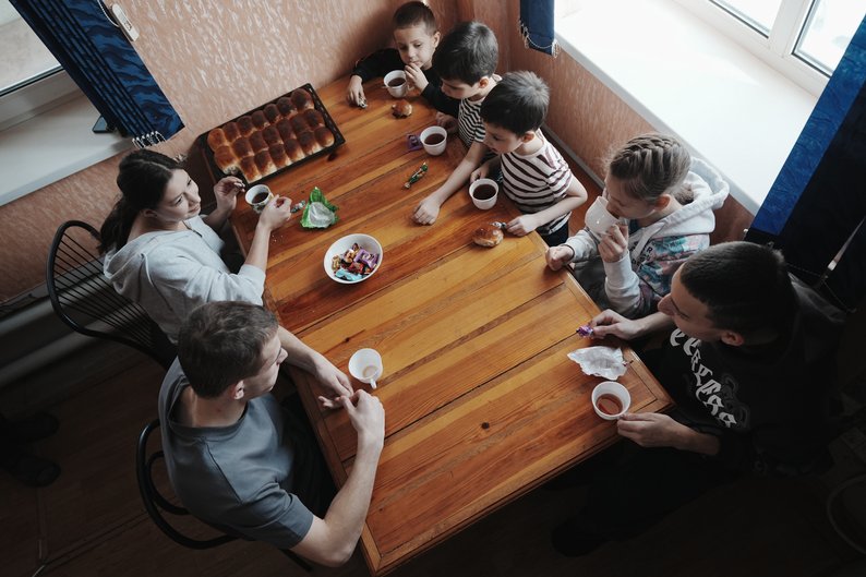 Діти п’ють чай за столом. Суспільне Харків/Вікторія Якименко