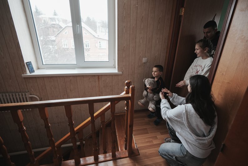 "Ми самі розуміємо, що залишилися без житла. Як нам це важко. А як нам сказали — дітки залишилися без батьків. Можна сказати, без родини. Ось це нас… Цей поштовх війни дав. Чоловік каже: «Ти подумай. Нам важко. А дітям як важко?»", — каже багатодітна мати.
