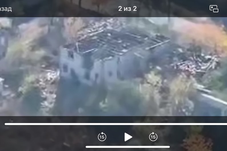 Стоп-кадр зі зйомки дроном, на якому видно, що будинок родини Маханьових у Куп’янську, знищений внаслідок обстрілів. Фото надали Олег та Наталія Маханьови