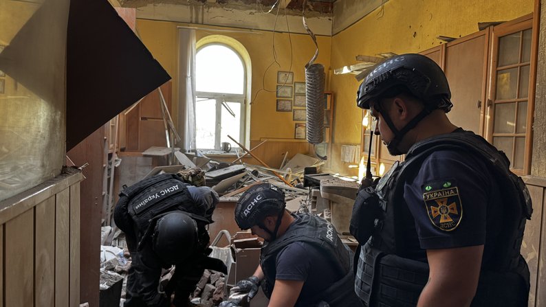 Наслідки влучання російського дрона по навчальному закладу в Слобідському районі Харкова, 16 вересня 2025 року. Суспільне Харків/Дмитро Гребінник