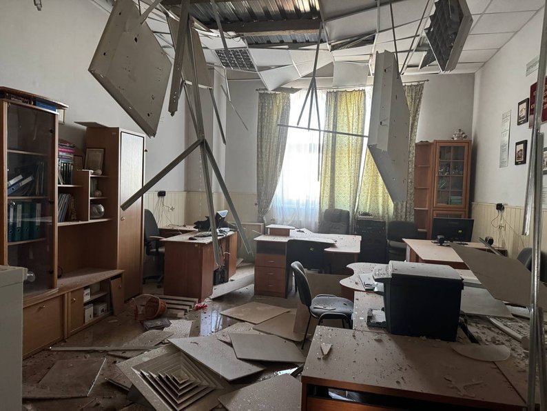 "Я у шоку. Це відділ технічного забезпечення центру інформаційних технологій фармацевтичного університету. Тут вся техніка, добре, що не постраждала. Моє робоче місце, воно не постраждало, це головне, тому що тут вся інформація важлива для роботи, для навчання наших слухачів", — розповіла Тетяна.